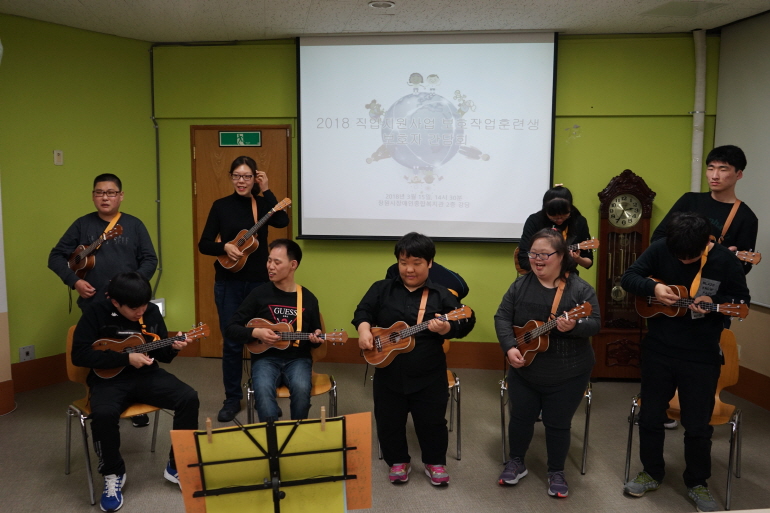 더불어 우쿠렐레 공연을 열정적으로 지도해주신 송은주 선생님과 우쿠렐레 연주단 훈련생 여러분께 정말 멋있었다는 말을 전합니다. 앞으로도 보호작업훈련생들이 지역사회와 함께 자립할 수 있도록 프로그램을 운영해 나가겠습니다. 보호자분들의 많은 관심과 격려 부탁드립니다.