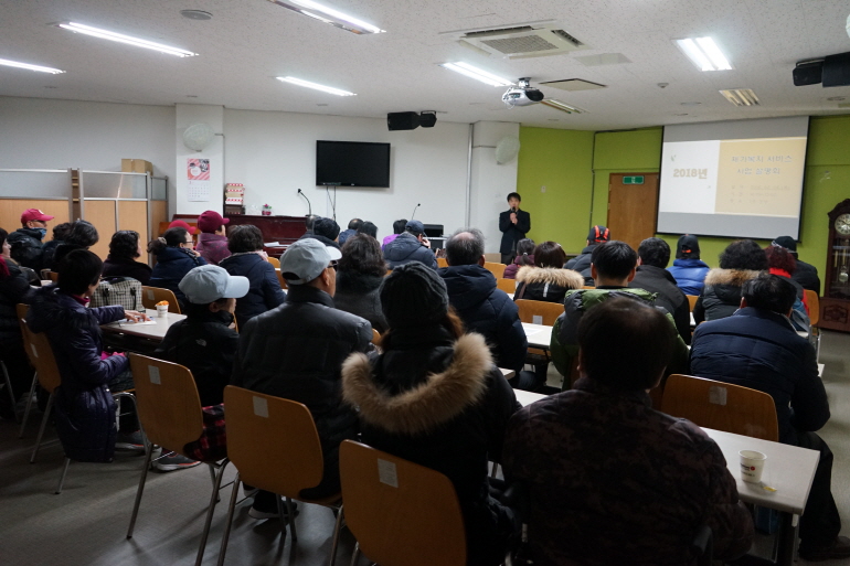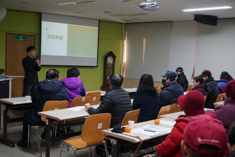 지역장애인들을 모시고 우리복지관 2층강당에서 재가복지서비스 사업설명회가 진행되었습니다.