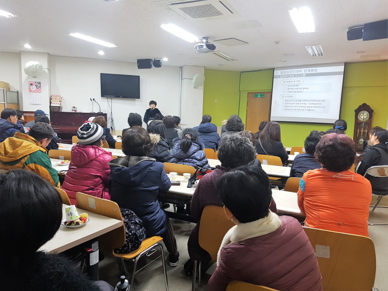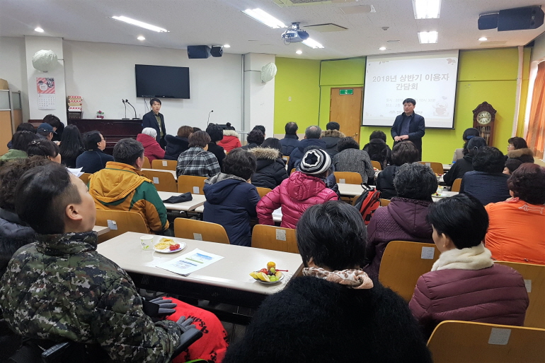 복지관 2층 강당에서 이용자와 보호자들을 모시고 2018년 상반기 이용자간담회를 가졌습니다.