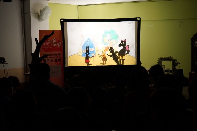 우리복지관에서는 자신의 단점을 극복하고 약점을 뛰어넘기위해 노력하는 주인공 동동이 이야기를 다룬 “짧은 귀 토끼” 공연이 있었습니다. 이날 공연은 2017년 신나는 예술여행 수행단체인 “극단 이야기”에서 함께 해주셨으며 1부 샌드아트공연 2부 복합인형극으로 이루어져 초등, 중등 방과후교실 친구들과 복지관 이용아동 및 훈련생 등이 평소 접하기 힘든 좋은 공연을 가까이서 관람할 수 있어서 보다 뜻 깊었습니다.