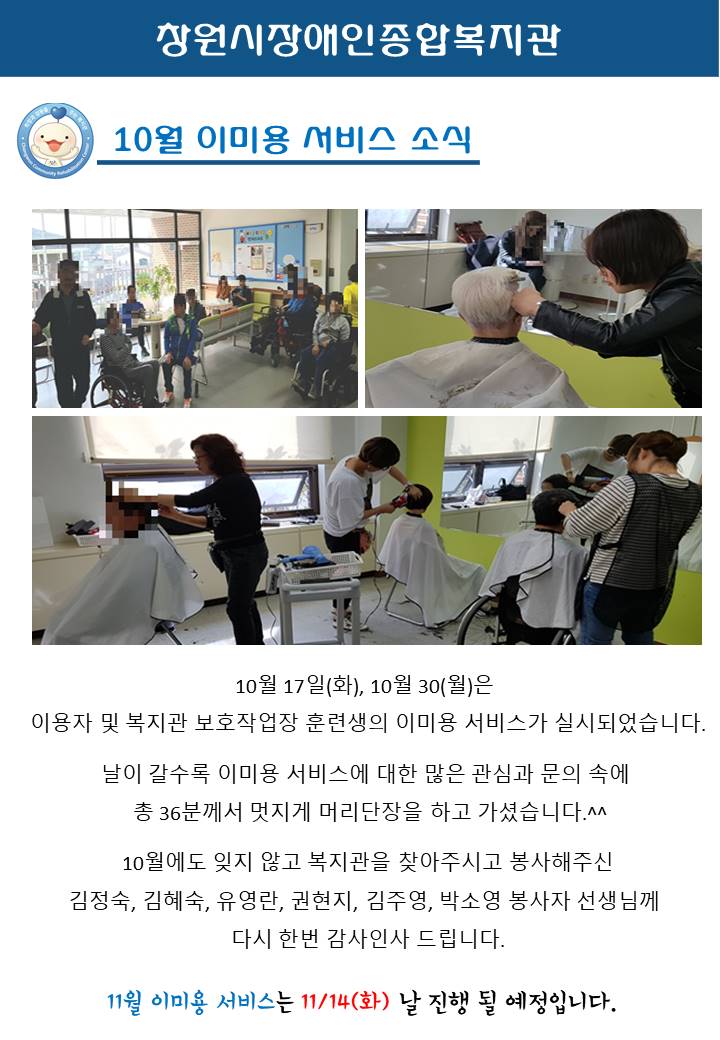 [2017. 11. 04(토) 활동지원사업 제공인력 보수교육 및 월례회]경남장애인종합복지관 1층 교육장에서 활동지원사업에 참여하는 제공인력 보수교육 및 월례회를 실시하였습니다. 이용자서비스 제공시 발생할 수 있는 응급상황을 사전에 예방하고 대처하는 안전보건교육과 심폐소생술 실습을 내용으로 진행되었으며 참석하신 모든 분들이 심폐소생술 실습을 하는 좋은 ...