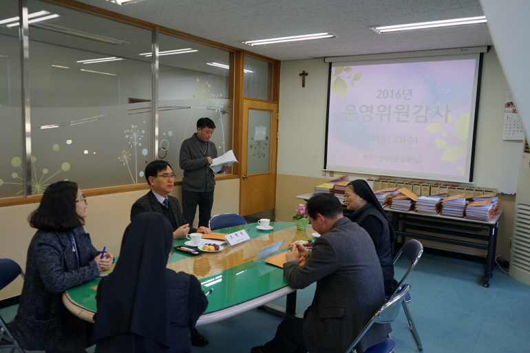 [2017. 01.25(수), 26(목). 법인 및 운영위원회 회계감사]25일(수) 운영위원회 감사, 26일(목) 법인 감사가 있었습니다.창원시장애인종합복지관의 업무집행 내용과 재무회계에 속하는 수입과 지출에 관한 제반증빙서류와 장부를 일반적인 감사기준에 따라 감사를 실시하였고, 감사결과 업무집행 내용과 결산서의 각 항은 정확하였으며 그 회계처리도 적...