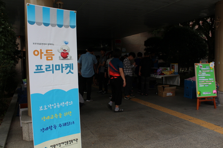 [2016. 09. 27. 3분기 보호작업훈련생 경제교육 프리마켓] 지난 화요일 우리 복지관 보호작업훈련생들의 경제교육을 위한 3번째 프리마켓이 진행되었습니다.좋은 물건을 보내주신 부모님들께 감사의 인사를 전하며 판매에 직접 참여한 훈련생 팽혜정, 신슬기, 신성진, 한국, 이탁수 모두 모두 수고하셨습니다.또한 날씨가 갑자기 더워져 땀흘리는 우리 훈련...