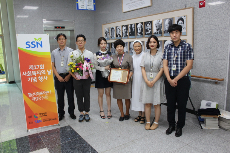 지난 7일 경상남도에서 주최하고 경상남도사회복지협의회에서 주관한 제17회 사회복지의 날 행사가 경남사회복지센터 대강당에서 있었습니다. 우리복지관에 2006년부터 10년 넘게 꾸준히 후원해 주고 계시는 창원기술정공 대표 오병후 운영위원장님께서 사회복지대상 기업공로상을 수상하셨습니다.