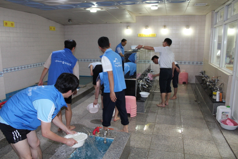 우리 창원시장애인종합복지관을 잊지 않고 분기마다 방문하셔서 기부금 전달식과 더불어 복지관내 봉사활등을 해주셔서 감사드립니다. 이번에는 복지관내 목욕탕 청소를 해주셨습니다. 습하고 더운 목욕탕 청소를 하시면서도 웃음을 잃지 않으시고 활동에 임해주셔서 감사합니다.