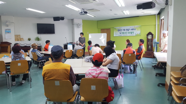 [2016. 05. 27. 창원YWCA와 함께하는 행복한 가족만들기 세미나 & 가족사진촬영]지난 5/27 (금) 우리복지관 2층 강당에서 창원 YWCA와 함께하는 행복한 가족 만들기 세미나 및 가족사진촬영이 진행 되었습니다.장애인가족 및 부부세대를 대상으로 행복한 가족 만들기의 첫 걸음인 배우자 및 가족을 배려하는 비폭력 대화법에 대하여 한국 ...