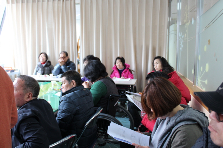 [2016. 02. 24. 장애인활동지원사업 이용자 간담회] 2016년 상반기 장애인활동지원사업 이용자간담회를 2월 24일 오전, 오후 2타임으로 나눠서 2층 프로그램실에서 진행하였습니다.올해 변경되는 사업내용 안내를 중심으로 이용자분들의 다양한 욕구를 들을 수 있는 귀한 시간이었습니다.