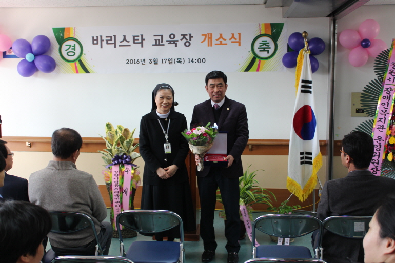 [2016. 03. 17(목) 14:00~15:00 바리스타 교육장 개소식] 창원시장애인종합복지관에 바리스타 교육장을 개소하였습니다. 이번 바리스타 교육장개소를 통해 장애인 및 가족의 전문적이며 커피에 대한 체계적인 교육의 기회를 제공할 수 있게 되었으며, 특히 교육장에 사용되는 기자재(커피머신 1set)를 후원해주신 국제로타리 3720지구 창원...