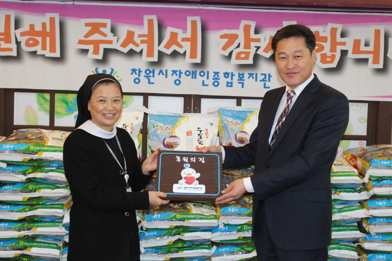 이날 기부된 쌀은 우리복지관을 통해 창원 전역의 저소득 장애인에게 전달 될 예정입니다.