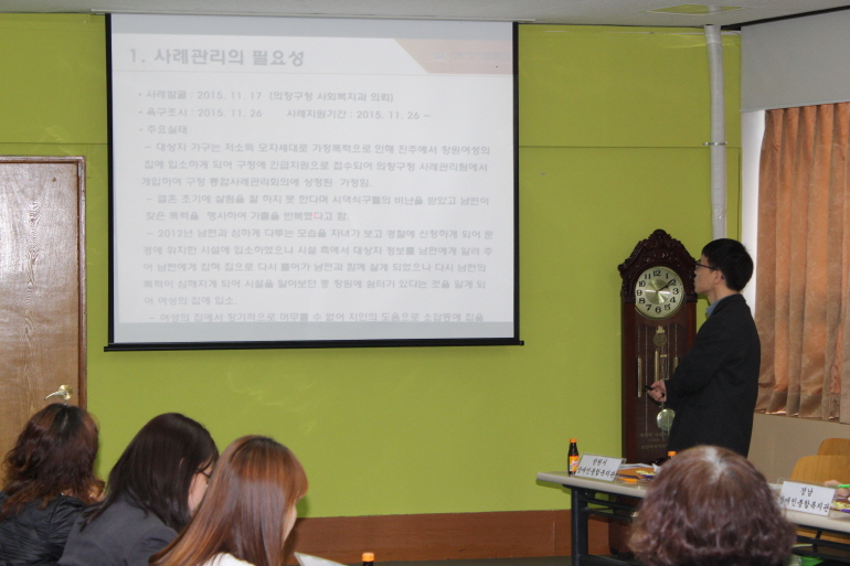지난 22일 2016년 1차 지역복지협의체 지역사례지원회의가 우리복지관 2층에서 진행되었습니다. 지적장애 한 부모 가정문제라는 사례 상정으로 관련유관기관과 가정상황에 대한 정보공유와 지역사회기관들의 역할에 대하여 고민하는 시간을 가졌습니다.