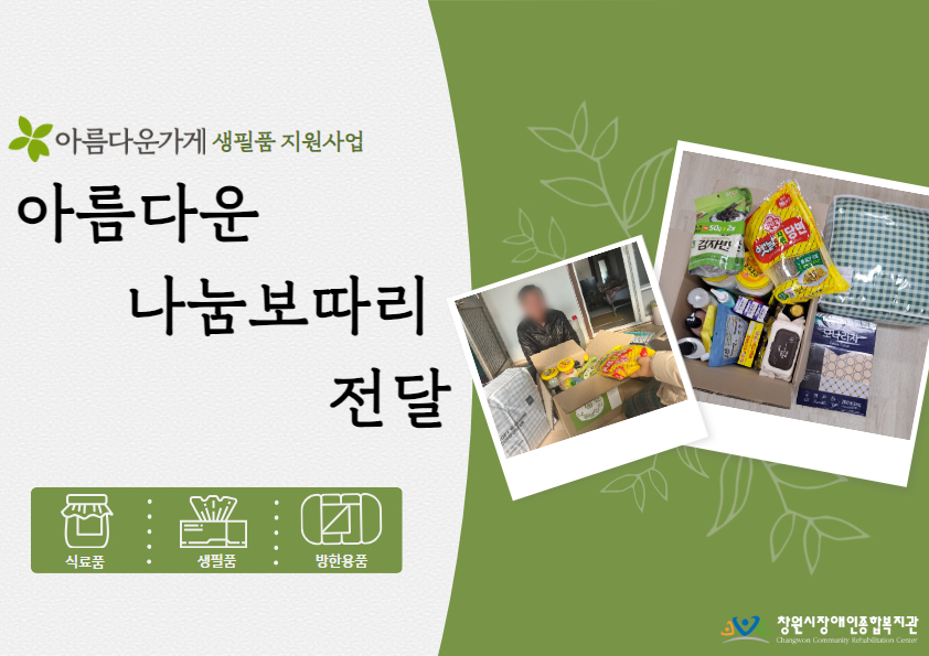 1월 16일 목요일. 건강보험심사평가원 울산경남본부(본부장 이연봉)에서는 설명절을 맞아 100만 원 상당의 선물세트를 후원해주셨습니다.이날 후원전달식에는 심평원 직원분들과 함께 직접 장애인 가정을 방문해 후원 물품을 전달하며 따뜻한 나눔을 실천하였습니다.준비해 주신 선물세트는 두고두고 먹을 수 있는 건어물과 김으로 구성하여 선물을 받으시는 재가장애인분들이 ...