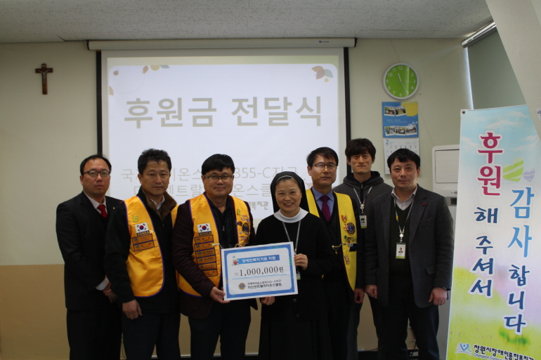 [2016. 02. 16 마산센트랄라이온스클럽 후원금 전달]국제라이온스협회355-C지구 마산센트랄라이온스클럽(회장 정차용L )은 2016년 2월16일 창원시장애인종합복지관을 방문해 후원금 100만원을 전달해 주셨습니다.전달된 후원금은 저소득장애인복지 증진을 위해 사용히겠습니다. 감사합니다