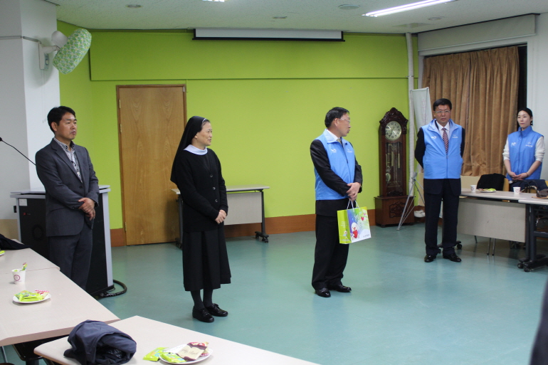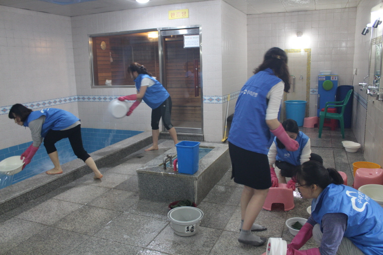 지난 12월 1일(화), 우리은행 경남영업본부 임직원 30여명이 저희 복지관을 방문하여 지속적인 지역사회공헌활동의 일환으로「우리사랑나눔터」장애인복지관 프로그램사업 활성화 및 장애인복지를 위한 기부금 2,000,000원을 전달하여 주셨습니다. 그리고 자원봉사활동으로 다시 운영을 시작하게 된 목욕탕을 깨끗하게 청소해 주셨습니다.