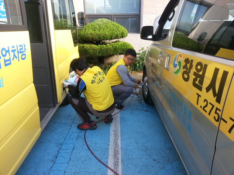 교체시기를 놓쳐 교통안전 위험에 노출된 차량의 수리와 안내로 장애인들의 차량안전운행에 도움을주셨습니다.서비스 이용장애인들은 고마워하였고 나누기 봉사회원들도 뿌듯해하였습니다.