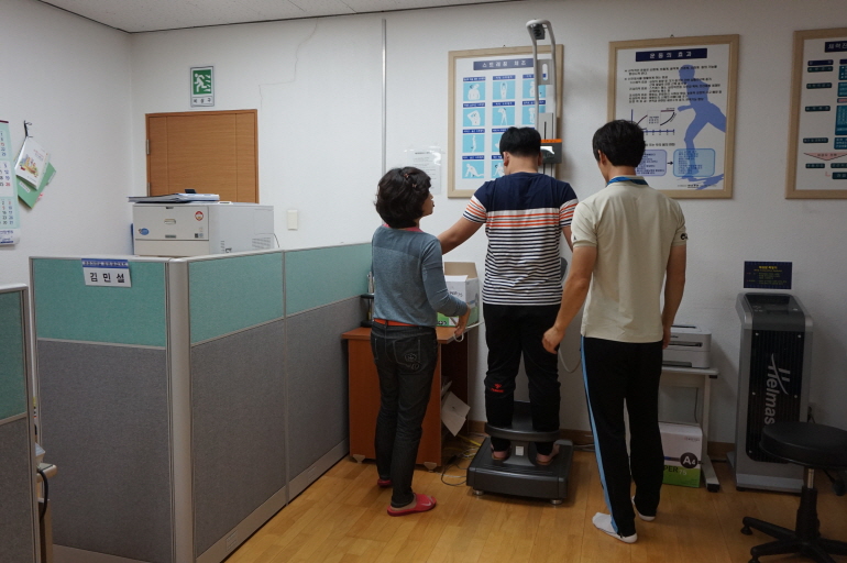 지난 25일(금) 오후 4시에 창원시설관리공단 실내수영장팀 스포츠건강센터에서 2015년 경남장애인생활체육『2015년 창원시 장애청소년 스포츠잠재력교실』지원사업 참여자 27명(장애학생 15명, 지도자 및 보조교사 12명)을 대상으로 체성분 사후검사를 실시하였습니다.