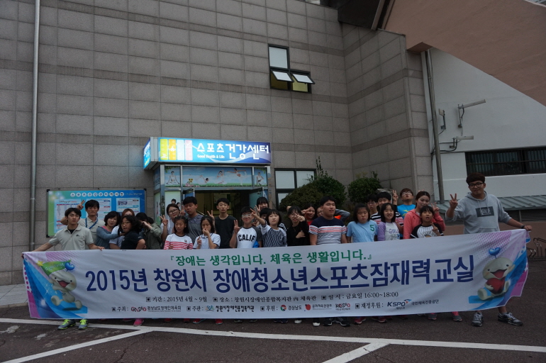 2015년 경남장애인생활체육『2015년 창원시 장애청소년 스포츠잠재력교실』지원사업은 경상남도, 문화체육관광부, 대한장애인체육회, 국민체육진흥공단이 재정후원하고, 경상남도장애인체육회이 주최하며, 창원시장애인종합복지관이 수행하고 있는 사업입니다.