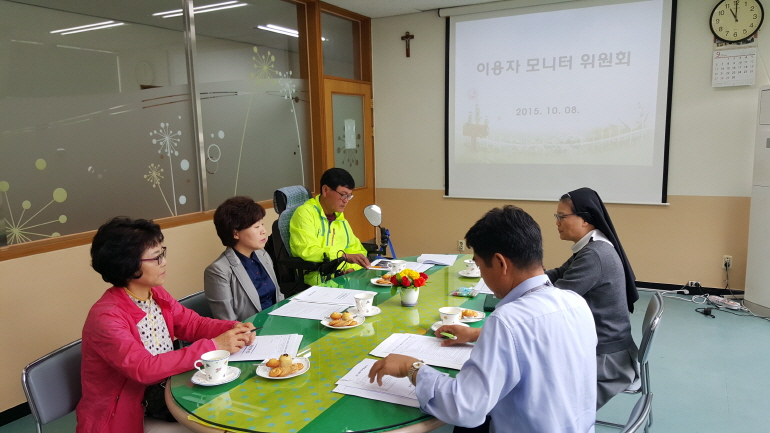 이용자모니터위원회는 이용자의 고충, 민원 청취, 이용자의 권익 증진을 위하여 구성된 모임으로 이용자와 보호자가 직접 참여합니다.