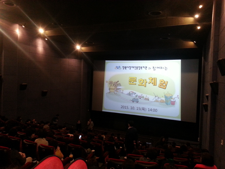 자원봉사자와 함께하는 문화체험 페이지 정보 작성자 문경권 댓글 0건 조회 9,197회 작성일 15-10-20 13:34 본문 [2015. 10. 15. 자원봉사자와 함께하는 문화체험]장애인과 자원봉사자가 함께하는 행사를 통해 서로 알아가는 시간을 가지고 영화관람을 통해 자원봉사자의 봉사의식 고취 및 스트레스 해소를 위한 자리를 마련하였습니다.앞으로도 잘 부탁드립니다~^^ 이전글창원중앙라이온스클럽 기관방문 15.10.20 다음글경남대학교 심리학과 장애오감체험 15.10.20 목록 댓글목록 댓글목록 등록된 댓글이 없습니다.
