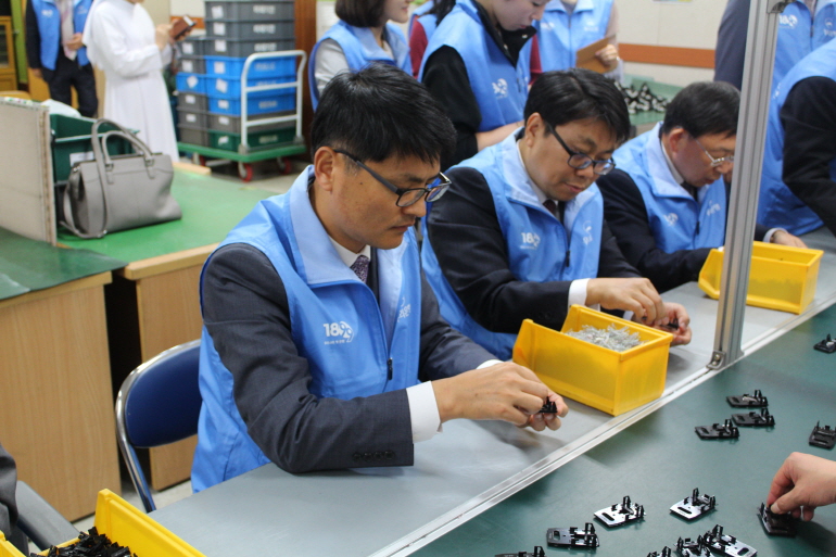 기부금 전달식과 더불어 일반고용이 어려운 중증 장애인의 취업을 위한 직업훈련활동에 직접 참여해보며 장애인복지에 큰 관심을 기울였다. 이번 방문으로 “지역 내 어려운 장애인가정에 우리은행의 기부활동이 지역주민들에게 좋은 씨앗이 될 것”이라고 말했다.