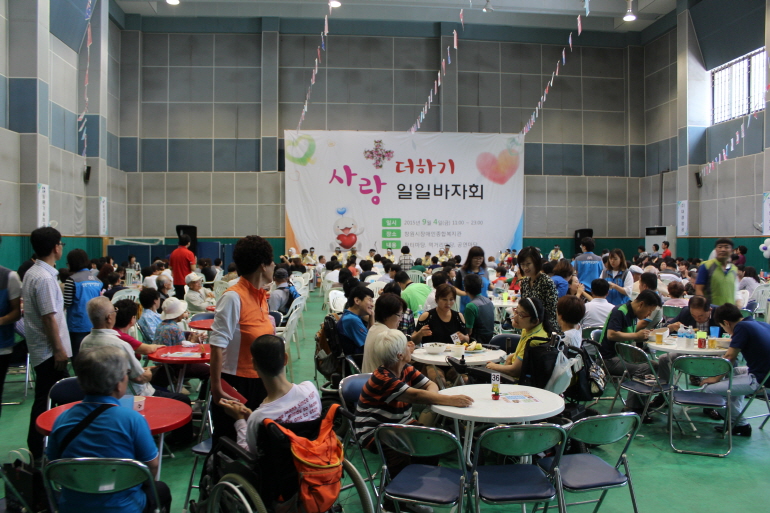 [2015. 09. 04 2015 사랑더하기 일일바자회]어려운 경제여건에도 불구하고 뜻을 같이하고 많은 사람들이 동참하여 주시고 격려하여 주셔서 행사를 성황리에 잘 마무리 했습니다. 이날 모인 성금과 함께 여러분의 따뜻한 마음이 우리 주위의 어려운 이웃에게 잘 전달될 수 있도록 최선을 다하겠습니다.다시한번 진심으로 감사드립니다.- 창원시장애인종합...