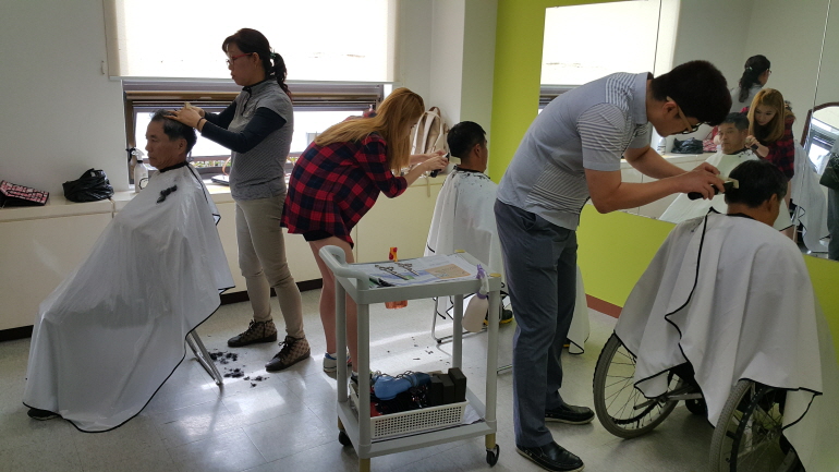 [2015. 09. 15. 이·미용 서비스 실시] 어제 복지관 2층 자원봉사자실에서 9:30부터 11:30까지 이미용 서비스가 진행되었고 방문 이·미용 한가정도 다녀왔습니다.~^^ 많은 분들이 이·미용 서비스를 받으시러 복지관에 찾아와주셨고 총 31분께서 멋지게 머리단장을 하셨습니다. 대기시간이 조금 길어졌지만 서로 인사나누시고 이야기하시며 웃음꽃이 ...