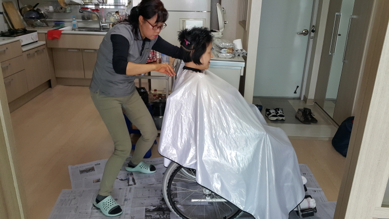 어제 복지관 2층 자원봉사자실에서 9:30부터 11:30까지 이미용 서비스가 진행되었고 방문 이·미용 한가정도 다녀왔습니다.~^^
