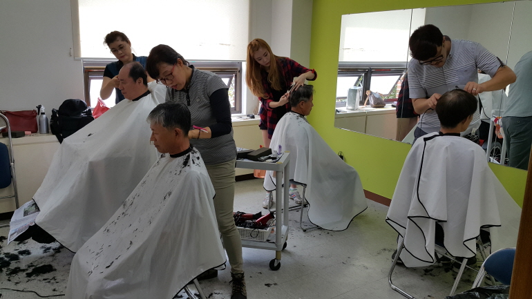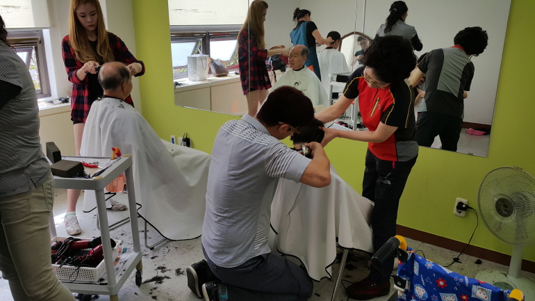 정성스러운 손길로 머리 손질해주신 경남미용협회 김정숙, 김덕연 봉사자님과 박승철 헤어스튜디오 김세윤, 이영현 봉사자님께 감사의 인사를 전합니다.