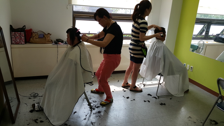 [2015. 08. 11 이미용서비스 실시]오늘 복지관 2층 자원봉사실에서 이미용서비스가 진행되었습니다. 무더운 날씨였지만 많은 분들이 찾아와주셨고 방문이미용 한 분을 포함하여 총 24분께서 멋지게 머리단장을 하셨습니다. 이․미용서비스에 수고해 주신 경남미용협회 소속 김정숙, 김덕연, 김세윤, 이영현 봉사자님께 감사의 인사를 전합니다.