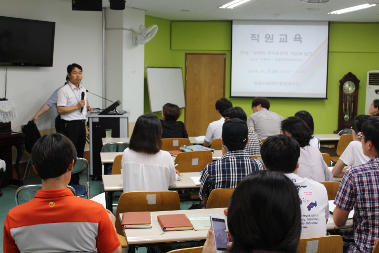 [2015 . 07. 31 직원교육 실시] 복지관 직원 전문성 강화를 위한 직원교육을 실시하였습니다. ◈ 일시 : 2015. 07. 31(금) 13:00 ~ 17:00◈ 내용 : 장애인 권익옹호의 개념과 실천◈ 강사 : 이동석(성공회대 외래교수)복지관 직원들이 보다 더 전문적이고 실천적인 전문기술을 갖출 수 있도록 노력하겠습니다.
