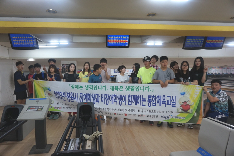 통합체육교실에 참여하는 학생들이 지난 토요일 볼링장을 다녀왔습니다. 체육관에서 간이볼링을 하며 열심히 연습했던 실력을 마음껏 뽐낼 수 있었는데요. 원하는 곳으로 볼링공이 잘 굴러가지 않았지만 집중하여 열심히 볼링공을 굴렸답니다. 친구들 중에서는 100점을 넘긴 친구도 있었는데요. 맛있는 간식을 2개나 먹을 수 있는 영광을 차지하였답니다. 볼링은 혼자하는 운동이지만 서로 응원하고 격려해주는 모습 속에서 장애와 비장애의 구분은 보이지 않았습니다.