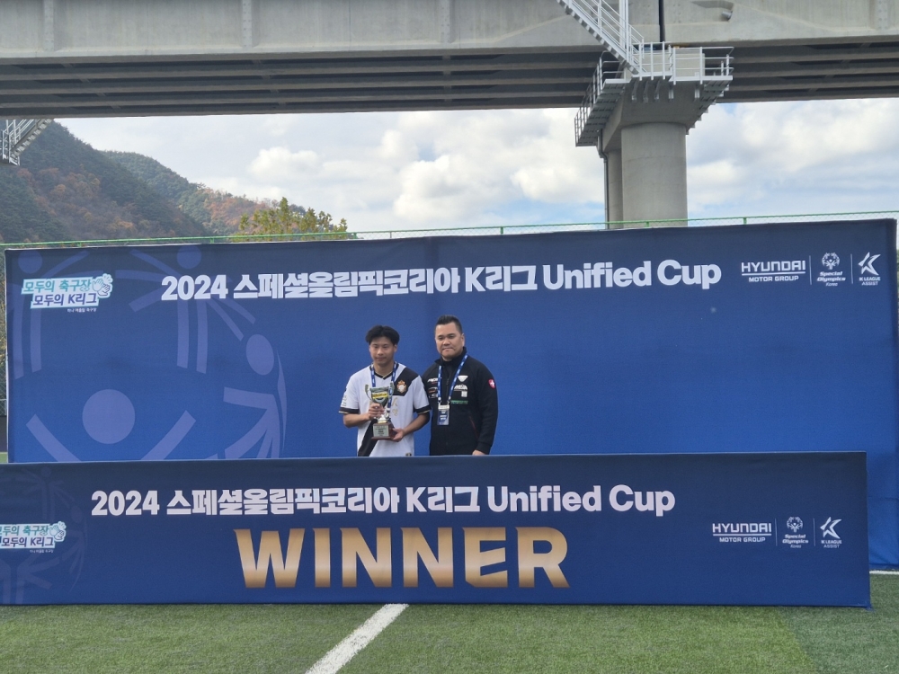 스페셜올림픽코리아(회장 정양석)와 케이리그어시스트(이사장 곽영진)가 10일 충청북도 충주 수안보 생활체육공원에서 ‘2024 스페셜올림픽코리아 K리그 유니파이드컵’을 성황리에 종료했습니다.