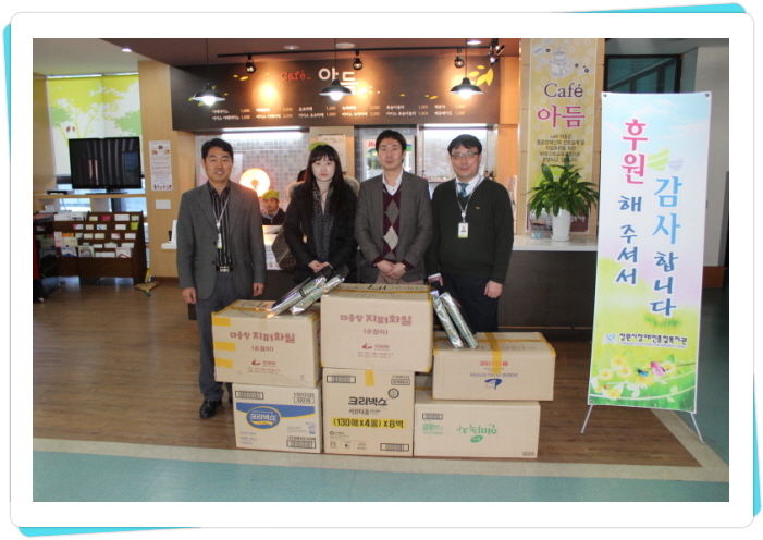 [2015. 02. 12 ~ 02. 17 저소득 재가장애인 및 복지관 이용장애인 설명절 선물전달] 민족고유의 명절 설날을 맞이하여 저소득 재가장애인 및 복지관 이용장애인 190가정에 온누리상품권, 선물세트, 학용품세트 등 푸짐한 설날 선물을 전달하였습니다. 찾아온 손님에 대한 반가움과 넉넉한 마음으로 한결 따뜻하고 즐거운 설날이 되었습니다. ...