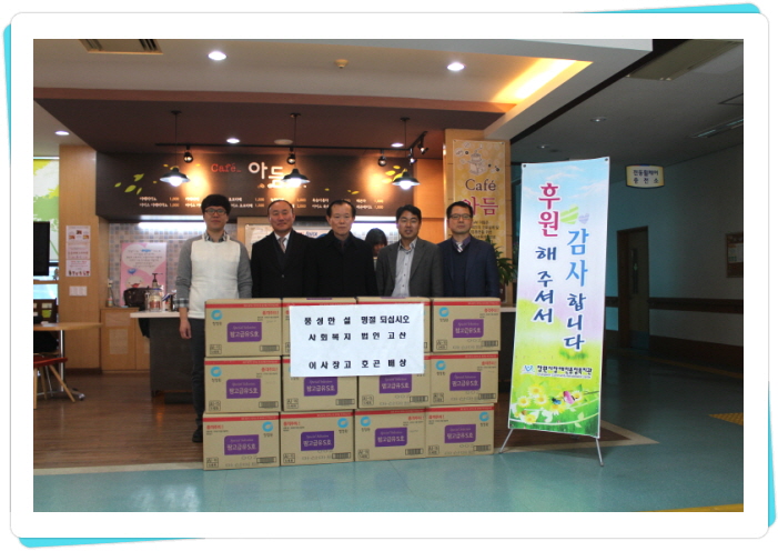 [2015. 02. 12 (재)동서문물연구원 설날 선물 후원]올해에도 설날을 맞아 (재)동서문물연구원에서 명절선물과 함께 저희 복지관을 방문해주셨습니다.이번에는 저희 복지관 이용 아동들을 위해 학용품을 100세트 후원해 주셨어요.선물을 받은 아동들이 기뻐할 모습을 생각하니 입가에 미소가 절로 지어집니다. 빨리 나누어 줘야 겠어요.(재)동서문물연구원 원...