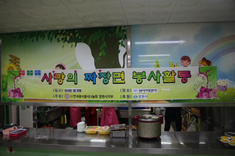 [2015. 01. 20 사랑의 자장면 나누기 DAY](사)한국중식봉사나눔회 창원시지부에서 후원하는 사랑의 자장면 나누기 DAY행사를 진행하였습니다. 요리사분들이 직접 만들어 주신 맛있는 자장면과 만두를 복지관 이용자 가족들과 함께 나누는 즐거운 점심식사 시간이었습니다.(사)한국중식봉사나눔회 창원시지부 회원님들 감사합니다.