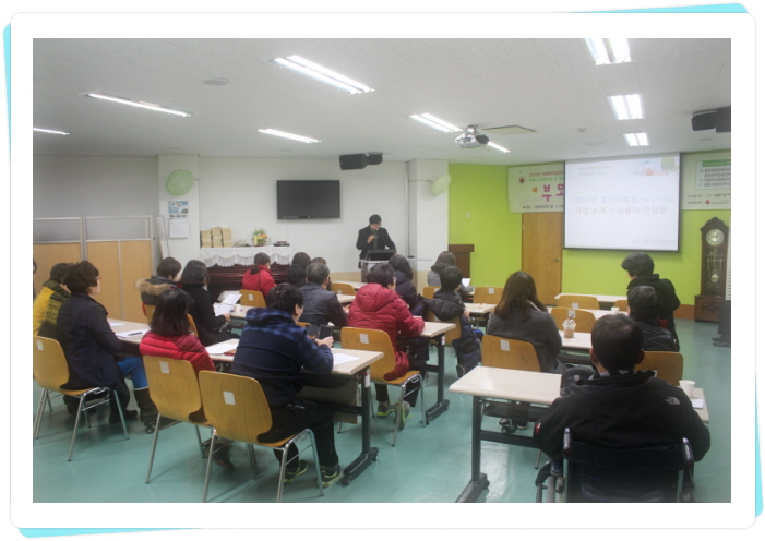 [2015. 01. 30 운동발달지원센터 체육프로그램 입학식 및 부모교육 실시]운동기능 및 생활체육 프로그램 참여학생과 학부모님들을 모셔서 입학식을 실시하였습니다.입학식은 프로그램 입학식 및 복지관 이용규정설명, 2015년도 프로그램 사업설명회 순으로 진행되었고다음으로 한국국제대학교 특수체육교육과 박병도 교수님께서 "장애아동 및 청소년들의 생활체...