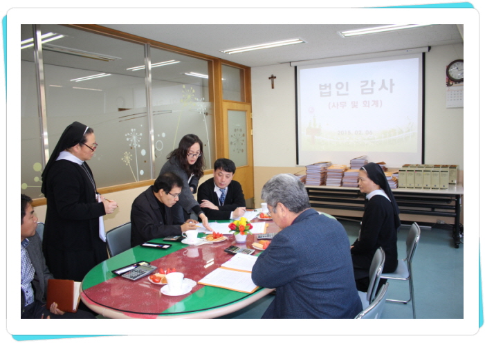 [2015. 02. 06 법인 사무회계감사]2월 6일(금) 11:00, 복지관 운영주체인『사회복지법인 범숙』사무회계감사를 실시하였습니다. 법인 감사위원인 천주교마산교구 최용진 신부님과 김계환 회계사님, 그리고 법인 조대제 사무국장님께서 수고해 주셨습니다.창원시장애인종합복지관의 업무집행 내용과 재무회계에 속하는 수입과 지출에 관한 제반증빙서류와 장부를 ...