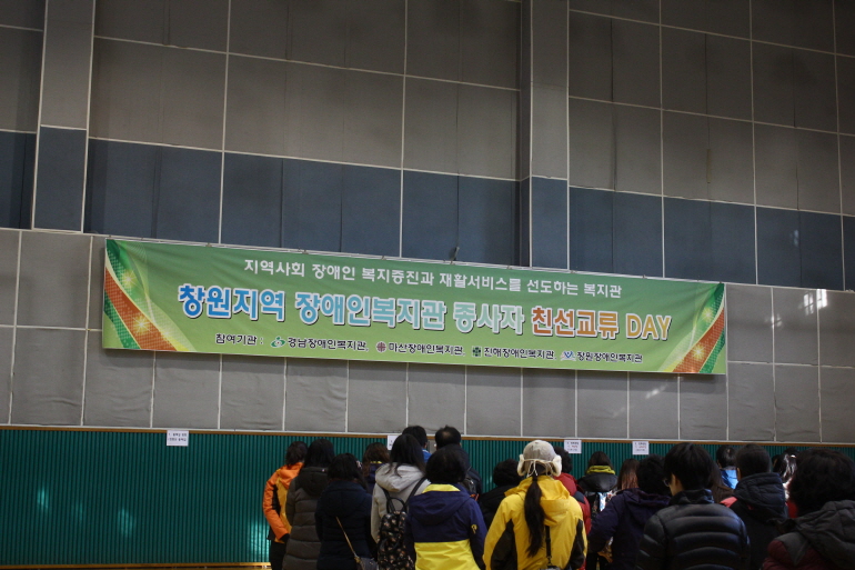 [2015. 01. 10 창원지역 장애인복지관 친선교류]을미년 새해를 맞이하여 창원지역 4개복지관(경남, 창원, 진해, 마산) 종사자들간의 화합과 교류를 위한 시간을 가졌습니다. 관련업무 위주로 3개조로 나누어 각각 둘레길 탐방, 체육활동, 영화관람을 진행했습니다.창원지역 장애인복지 발전의 중심축에 있는 직원들의 단합된 모습을 볼 수 있어서 좋았던 ...