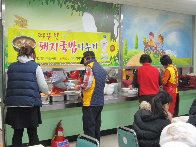 [2015. 01. 13. 새해 첫 국밥 나누기] 2015년 들어 처음으로 국밥을 나누는 시간을 가졌습니다.작년에 이어 올해도 변함없이 합천할매돼지국밥 조순자 할머님께서 복지관을 찾아주셨습니다. 올해도 할머님의 맛난 국밥, 매월 할머님의 국밥 먹는 날이 벌써 기다려집니다.변함없이 아낌없는 사랑의 국밥을 제공해 주시는 조순자 할머님께 감사드립니다....