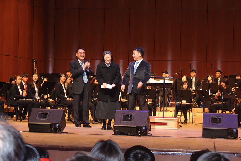 12월 16일 성산아트홀 대강당에서 펼쳐진 정기연주회는 자선기금 마련을 위한 공연이었는데요. 공연 관람에 오신 많은 분들이 십시일반 모아주신 기금 3백여만원과 가요 ‘회룡포’, ‘로맨스사랑’을 부른 강민주 초대가수의 특별찬조금 1백만원을 합쳐 4백여만원이 모아졌는데요.