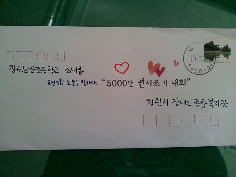 편지! 소통을 말하다.“5000만 편지쓰기 대회”라고 씌여진 봉투에
