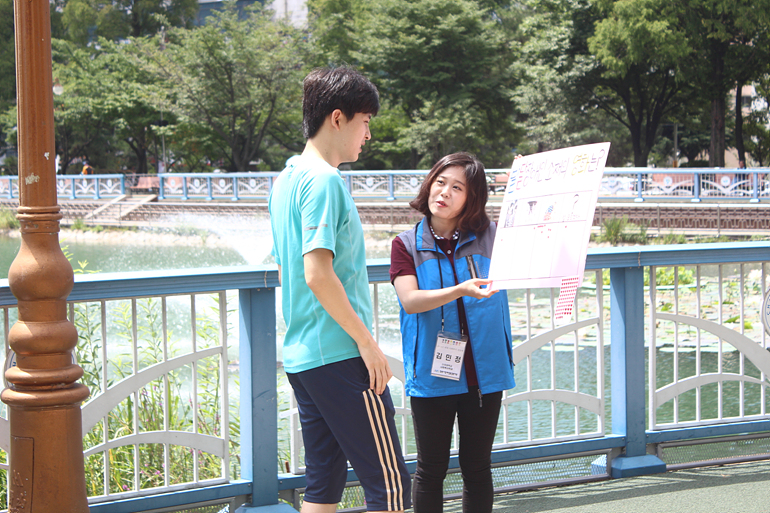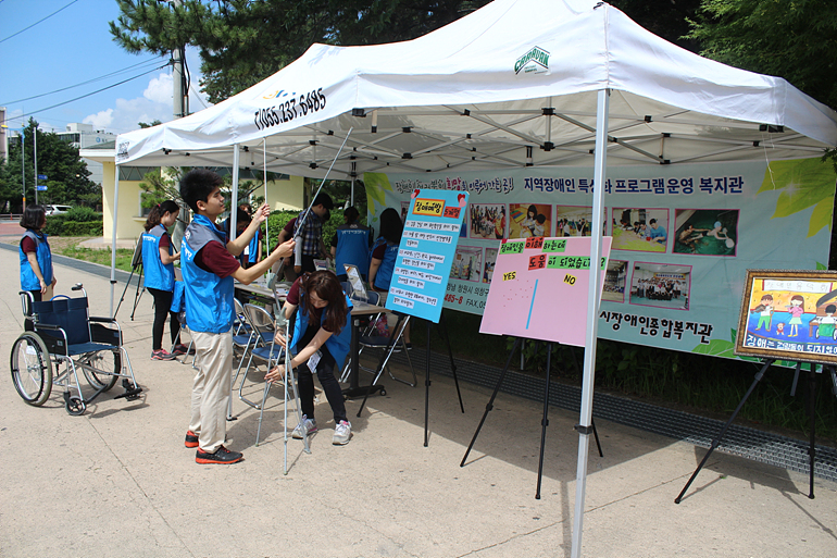 7월에 야외에서 캠페인이 진행되어 날씨가 무척 더웠고 진행하는 사회복지 실습생이 더위로 어려움을 겪었지만 지역주민에게 장애예방에 대해 알릴 수 있는 좋은 시간이었습니다.