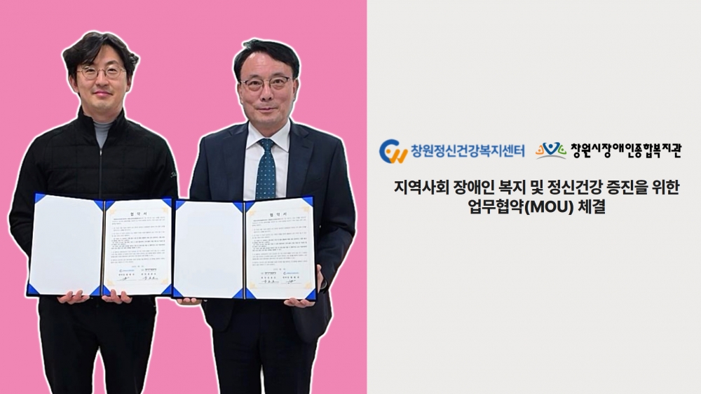 3월 4일 수요일, 창원정신건강복지센터와 지역사회 장애인 복지 향상과 정신건강 증진을 위한 업무협약(MOU) 체결이 있었습니다.