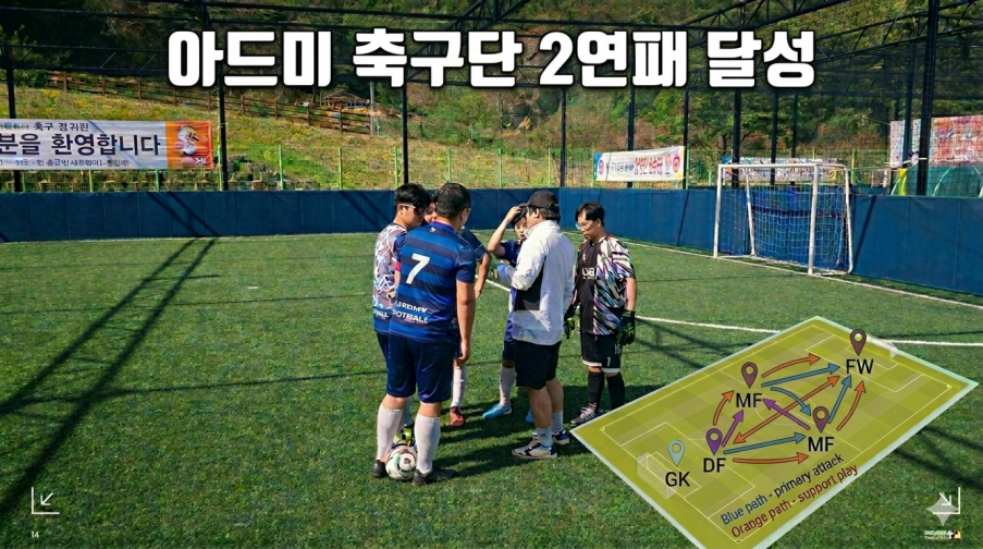 여기에 최후방에서 끊임없이 동료들을 독려하며 안정감을 보여준 주전 키퍼 강기원 선수와 벤치에서 응원하며 힘을 보탠 백업 키퍼 이석환 선수 등 모든 구성원의 감독의 지휘 아래 하나로 뭉친 노력이 한데 어우러져 ‘아드미 축구단’라는 이름의 완벽한 작품이 완성되었다.