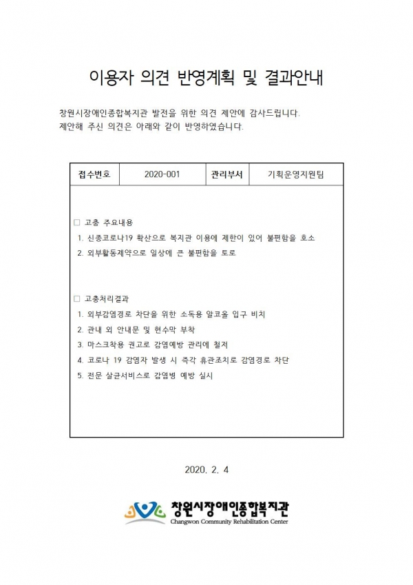 이용자 의견 반영계획 및 결과안내 페이지 정보 작성자 운영자 댓글 0건 조회 1,026회 작성일 20-02-04 14:17 본문 . 이전글Re: 안녕하세요 오늘 기관 방문한 실습생입니다. 23.07.31 다음글이용자 의견 반영계획 및 결과안내 21.10.29 목록 댓글목록 댓글목록 등록된 댓글이 없습니다.