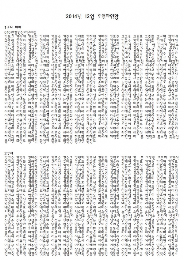 2014년 12월 후원해주신분들입니다 페이지 정보 작성자 신효진 댓글 0건 조회 7,412회 작성일 15-01-20 16:08 본문 늘 감사합니다~^^ 이전글2015년 1월 후원감사편지입니다 15.01.20 다음글새해 복 많이 받으세요~^^ 15.01.12 목록 댓글목록 댓글목록 등록된 댓글이 없습니다.