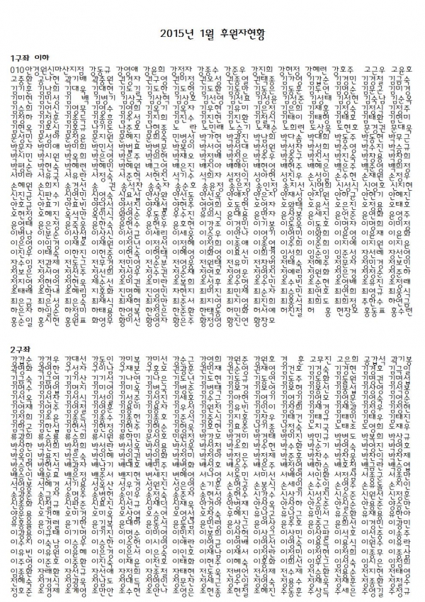 2015년 1월 후원해주신분들입니다. 페이지 정보 작성자 신효진 댓글 0건 조회 7,334회 작성일 15-02-16 17:22 본문 늘 감사드립니다~♡ 이전글2015년 2월 후원감사편지입니다 15.02.13 다음글2015년 1월 후원감사편지입니다 15.01.20 목록 댓글목록 댓글목록 등록된 댓글이 없습니다.