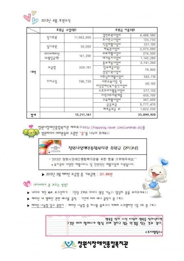 2013년 5월 후원감사편지 페이지 정보 작성자 이경민 댓글 0건 조회 8,883회 작성일 13-07-02 13:40 본문 이전글2013년 5월 후원해주신분들입니다. 13.07.03 다음글2013년 4월 후원해 주신 분들입니다. 13.05.23 목록 댓글목록 댓글목록 등록된 댓글이 없습니다.