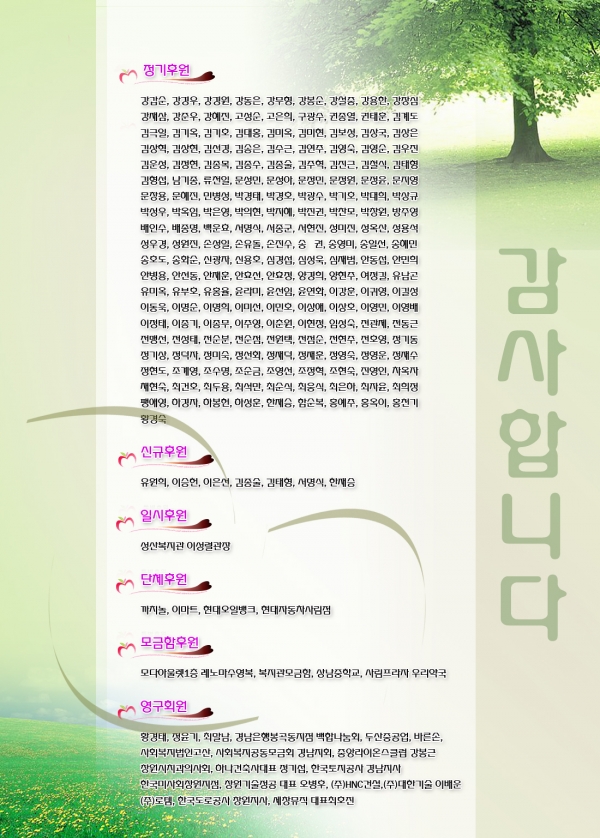 2007년 4월 후원해주신 분들입니다. 페이지 정보 작성자 운영자 댓글 0건 조회 7,265회 작성일 07-05-17 11:37 본문 .. 이전글 2007년 5월 후원감사편지입니다. 07.06.27 다음글2007년 4월 후원감사편지입니다. 07.05.09 목록 댓글목록 댓글목록 등록된 댓글이 없습니다.