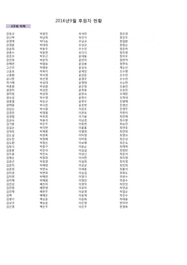 2016년 9월 후원자현황입니다. 페이지 정보 작성자 김준수 댓글 0건 조회 6,722회 작성일 16-10-20 13:23 본문 후원해주셔서 감사합니다. 이전글2016년 10월 후원자 현황입니다. 16.11.08 다음글2016년 9월 감사편지입니다. 16.10.20 목록 댓글목록 댓글목록 등록된 댓글이 없습니다.