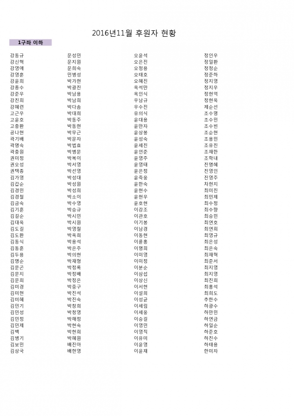 2016년 11월 후원자현황입니다. 페이지 정보 작성자 김준수 댓글 0건 조회 7,163회 작성일 16-12-19 15:52 본문 후원해주셔서 감사합니다. 이전글2016년 11월 후원감사편지입니다. 17.01.05 다음글2016년 10월 후원감사편지입니다. 16.11.23 목록 댓글목록 댓글목록 등록된 댓글이 없습니다.